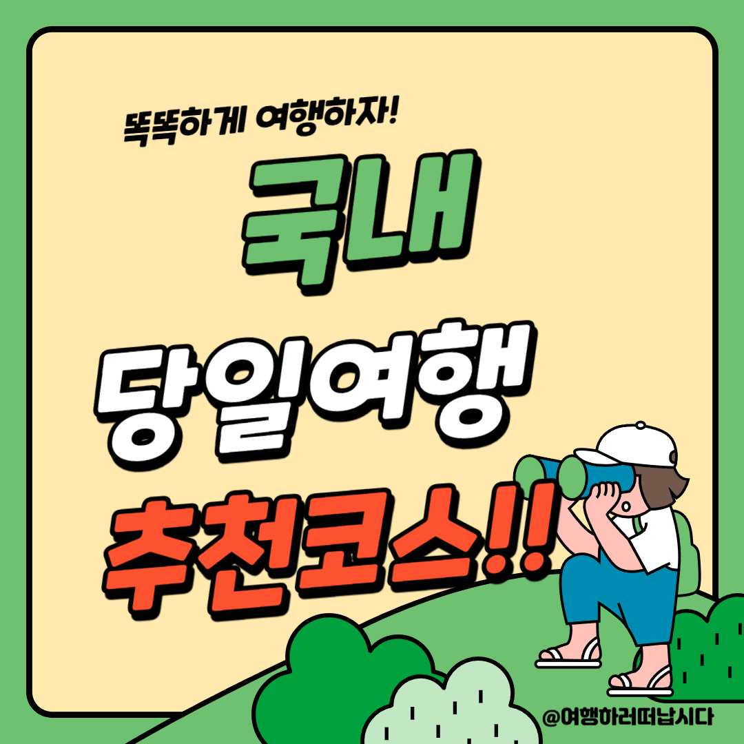 일상에서 벗어나 잠깐의 휴식을 취하고 싶을 때, 멀리 떠날 시간이 없다면 당일치기 여행을 떠나보세요! 국내에는 1박 2일도 필요 없이 당일만으로도 충분히 힐링할 수 있는 멋진 여행지가 많답니다. 오늘은 당일여행으로 가기 좋은 인기 있는 여행지와 추천 코스를 소개할게요. 이제 집을 나서기 전에 어떤 코스가 좋을지 한번 체크해보세요!