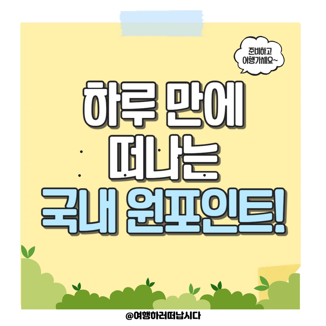 여행을 가고 싶지만 시간이 부족할 때, 하루 만에 다녀올 수 있는 원포인트 여행지는 최고의 선택이 될 수 있습니다. 이번 포스팅에서는 짧지만 강렬한 인상을 남길 수 있는 국내 숨은 명소들을 소개합니다. 자연 속에서 힐링할 수 있는 곳부터 감성적인 풍경이 가득한 명소까지, 특별한 하루를 위한 여행지를 찾아 떠나볼까요?