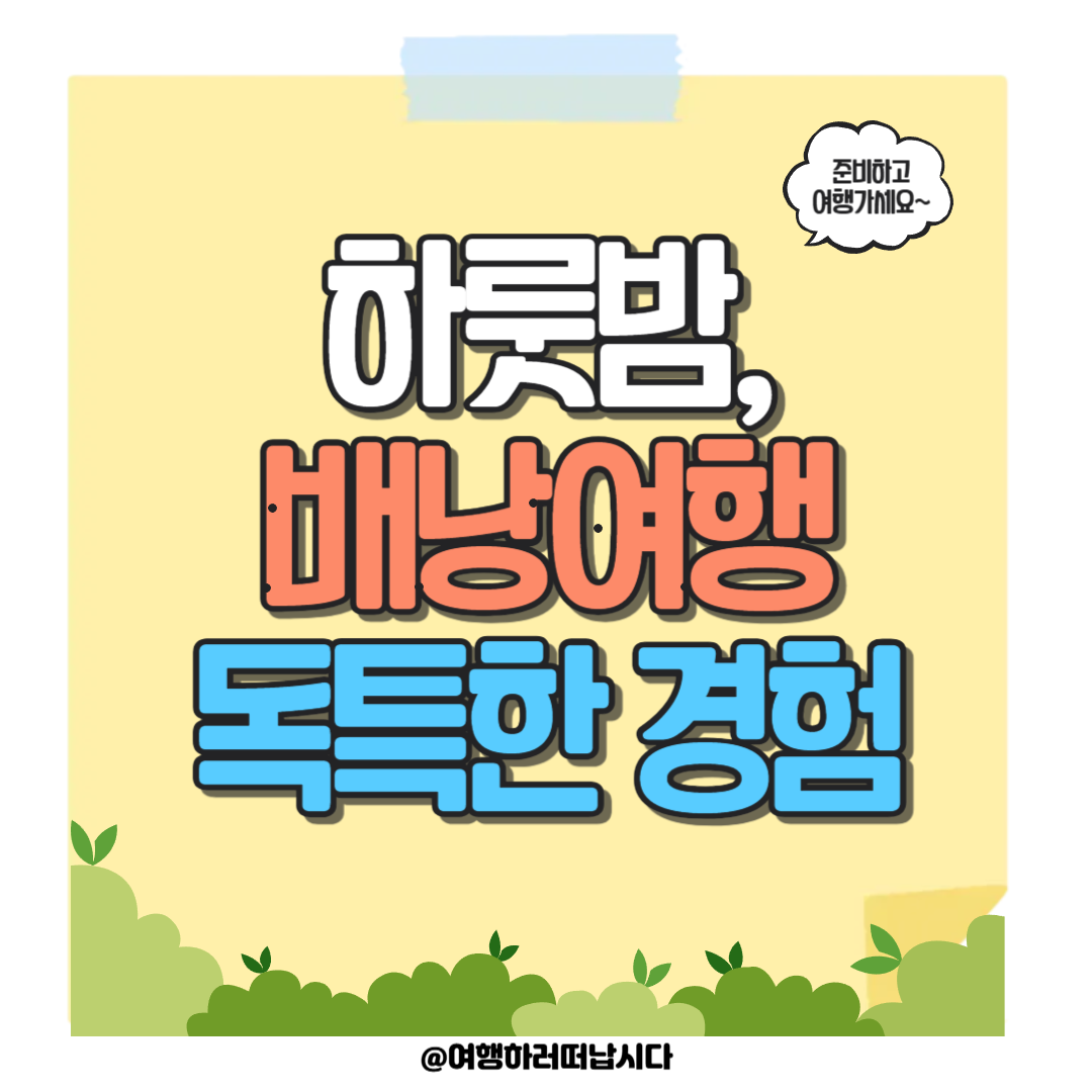 짧은 시간 안에 새로운 곳에서 특별한 경험을 하며 일상의 피로를 풀고 싶다면, 하룻밤 배낭여행을 떠나보세요. 그 짧은 시간이 당신의 일상을 더욱 풍요롭고 의미 있게 만들어 줄 것입니다.