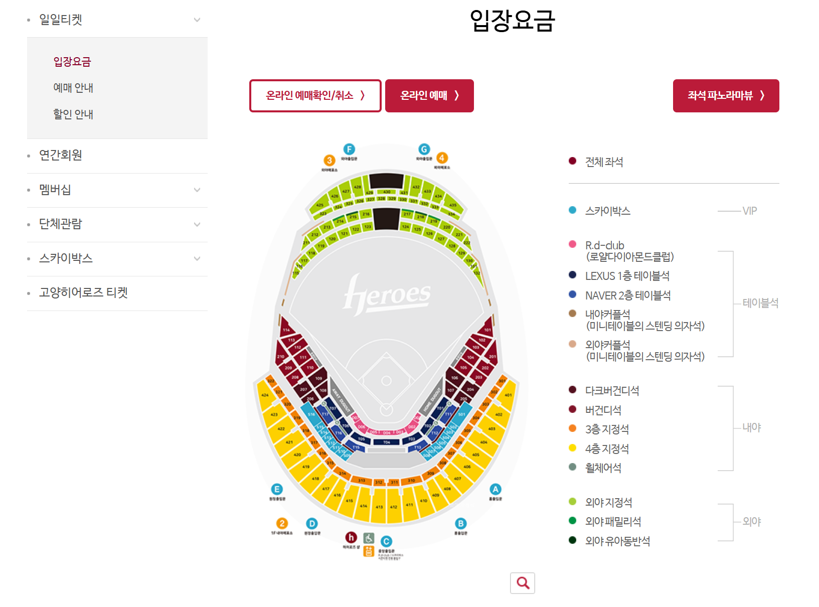 - 응원석 일부: 불꽃 방향과 반대일 경우 시야가 좁아짐. 고척 응원석은 고척 돔 사이트에서 체크.