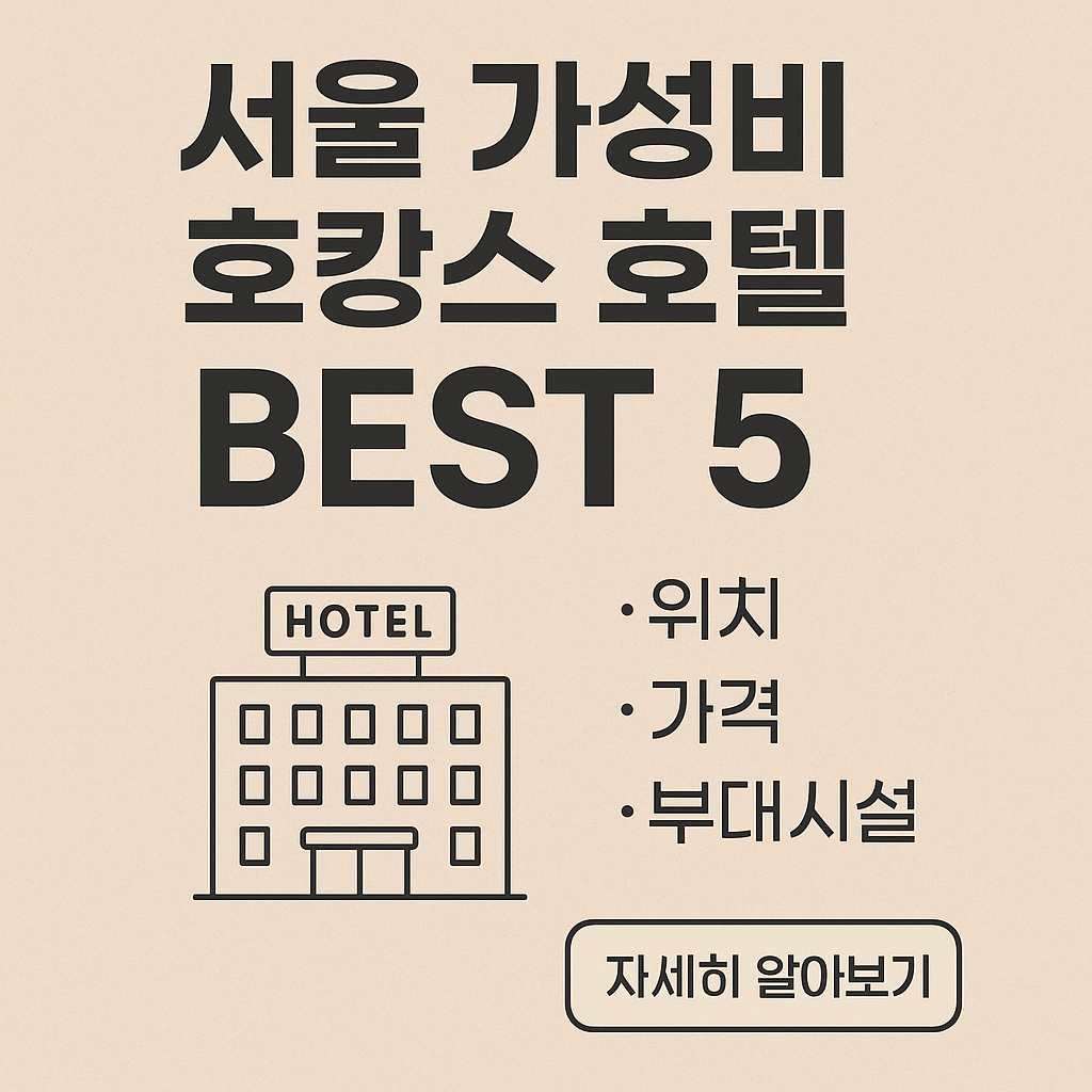 서울에서 합리적인 가격으로 호캉스를 즐길 수 있는 호텔을 찾고 계신가요? 위치, 가격, 부대시설 등 다양한 요소를 고려하여 가성비 좋은 호텔 5곳을 소개해드립니다.