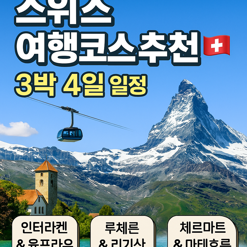 스위스는 그 자체로 하나의 그림 같은 여행지입니다. 알프스의 설경, 고요한 호수, 유럽 감성이 넘치는 도시 풍경까지… 하지만 일정이 길지 않다면 무엇을 어떻게 즐겨야 할까요? 이번 글에서는 3박 4일 기준으로 추천하는 스위스 핵심 여행 코스 3가지를 소개합니다.