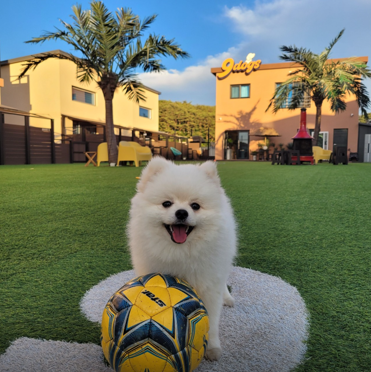 태안의 나인독스 펜션은 최대 5마리까지 동반 가능한 다견 가정 친화적 숙소입니다. 넓은 운동장과 공용 수영장이 있어 활동량 많은 댕댕이에게 딱이에요.