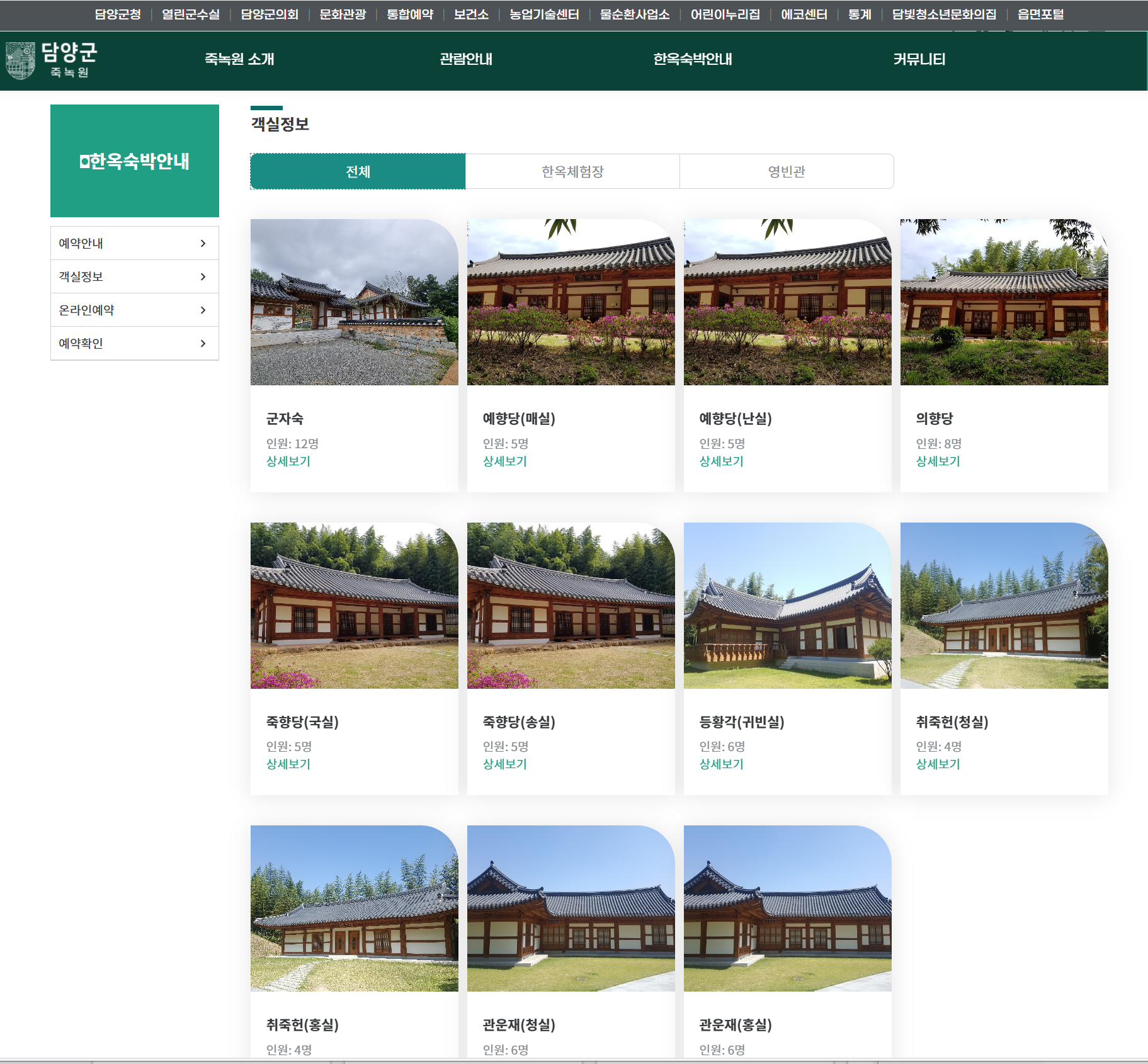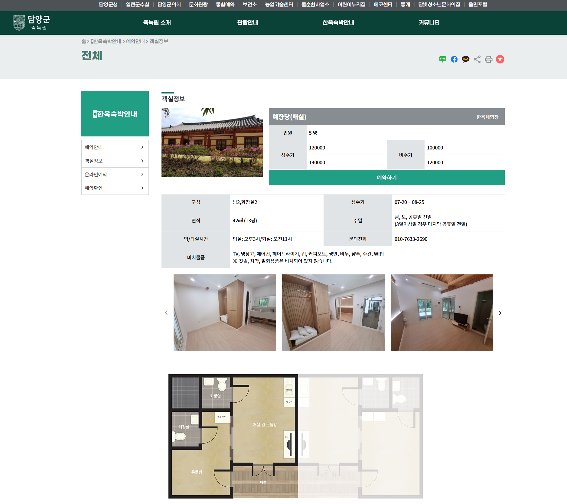 - 한옥숙박 객실정보