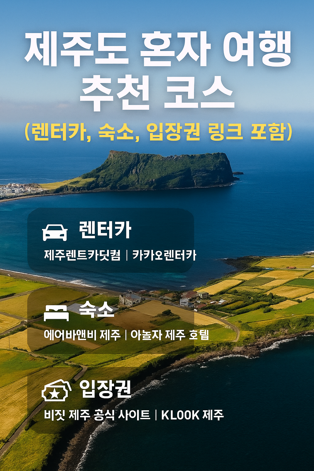 혼자 떠나는 제주도 여행은 자유롭고 힐링 가득한 경험이 될 수 있습니다. 아래에 추천 코스와 함께 렌터카, 숙소, 입장권 정보를 정리해드리니 참고하시기 바랍니다.