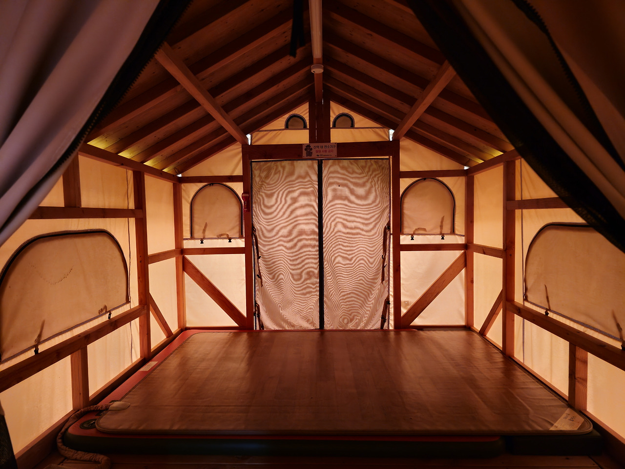 침대, 에어컨, 조리도구까지 갖춘 편의형 숙소. 국립공원 내에서 유일하게 글램핑이 가능한 곳입니다. - 치악산 금대야영장 (강원 원주)