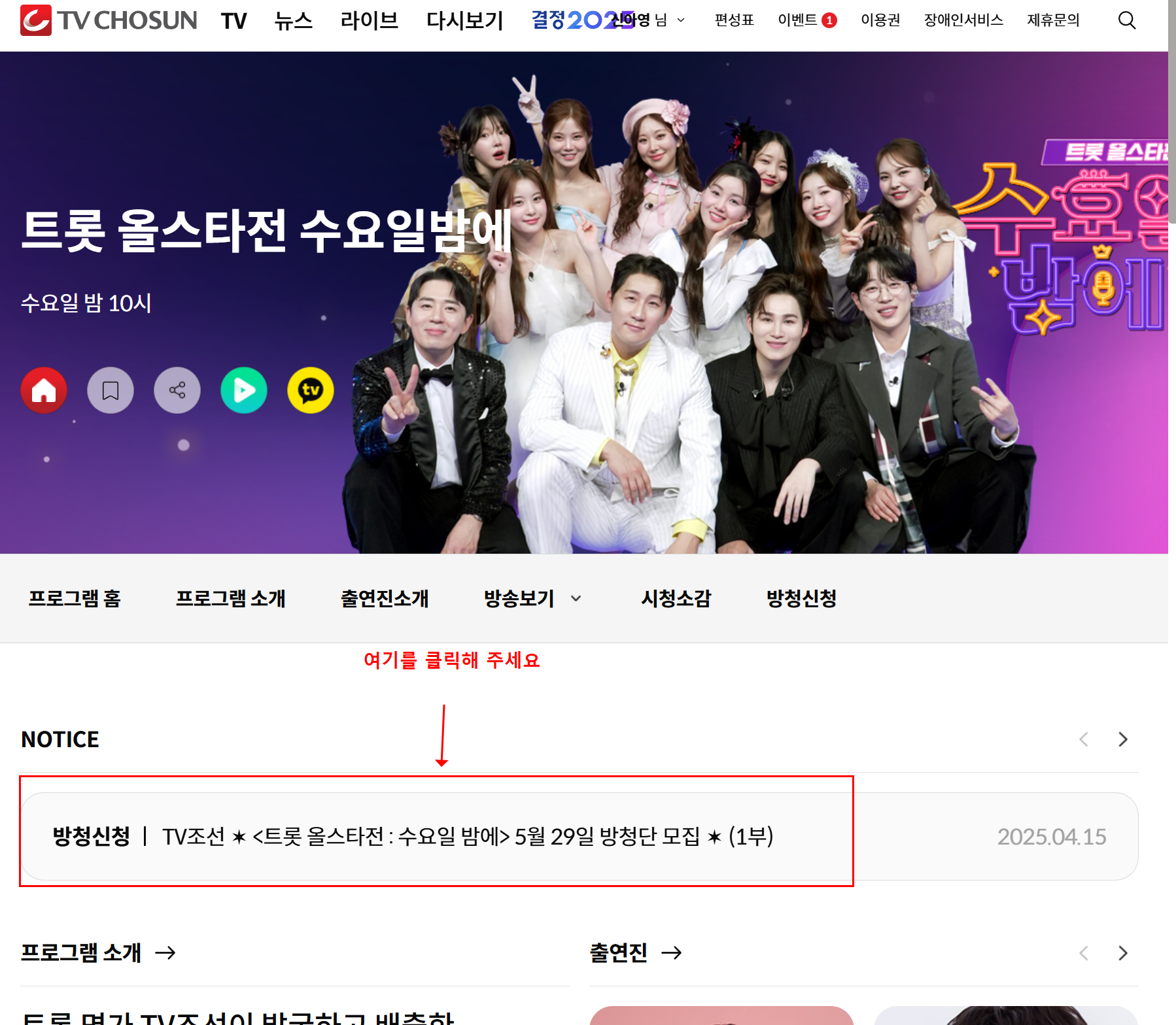 - 회원가입 및 로그인: 신청 전에 TV조선 회원가입 및 로그인을 미리 해두세요.