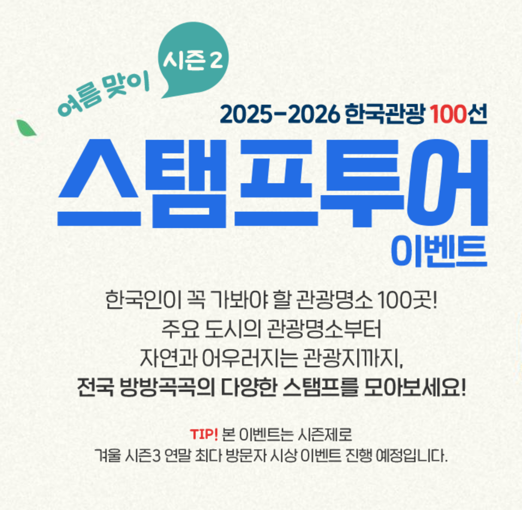 2025년 7월, 무더운 여름을 맞아 전국 한국관광100선 명소를 탐방하며 경품까지 챙길 수 있는 스탬프투어 이벤트가 시작되었어요! 서울의 한강공원부터 제주의 제주올레길, 강원의 설악산까지, 가족과 친구들과 함께 떠나는 여행이 더욱 풍성해질 거예요. 이번 글에서는 참여 방법, 주요 관광지, 경품 정보, FAQ까지 자세히 정리했으니 여름 여행 계획을 세우는 데 참고하세요!