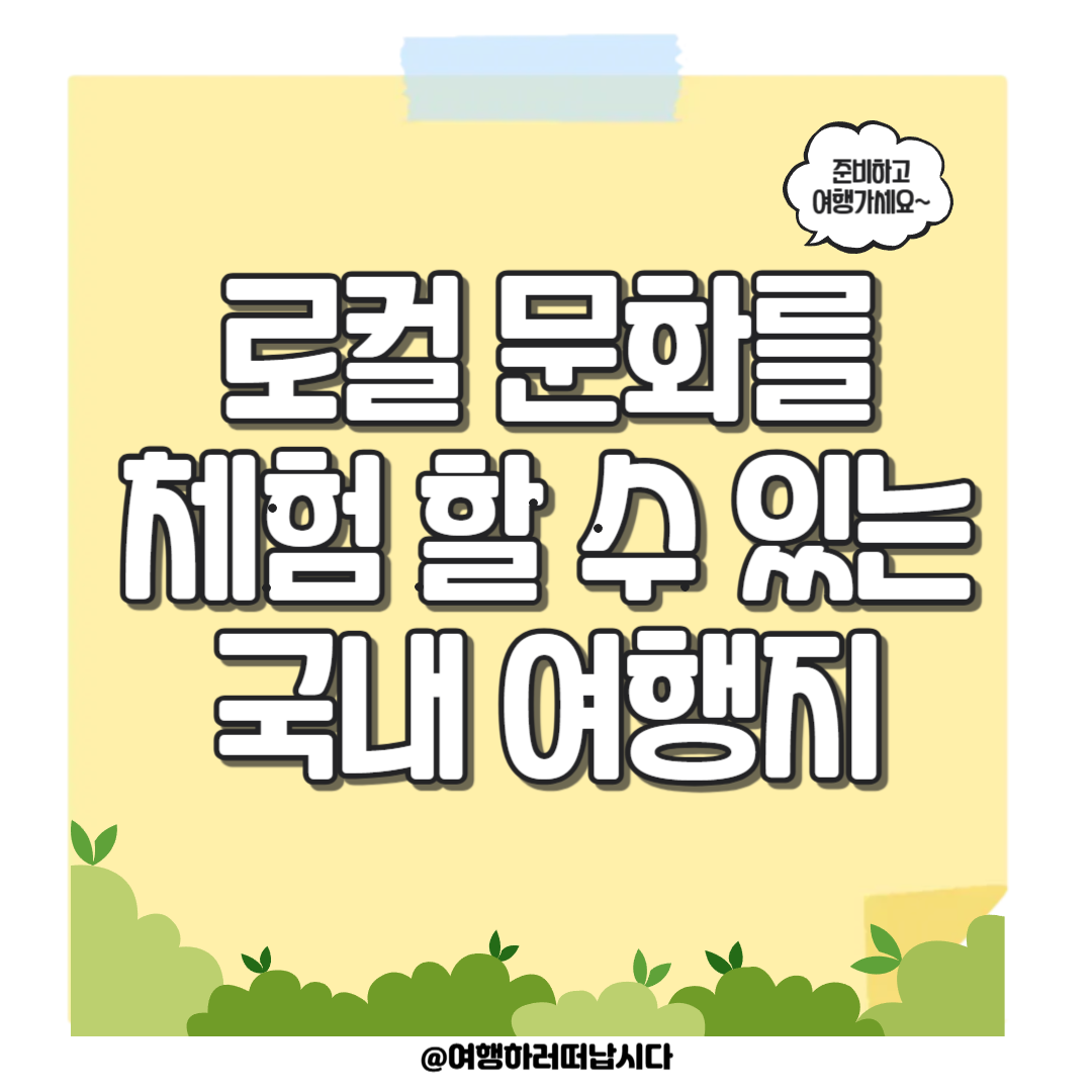 한국 곳곳에는 이렇게 다양한 로컬 문화 체험 여행지가 숨겨져 있습니다. 유명 관광지도 좋지만, 지역의 역사와 전통을 직접 경험해볼 수 있는 여행을 떠나는 것도 특별한 추억이 될 수 있습니다. 이번 주말, 도심을 벗어나 조금 더 깊이 있는 여행을 떠나보는 건 어떨까요? 😊