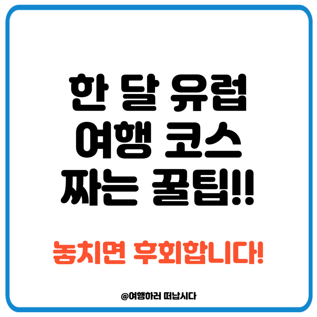 예산: 항공(왕복 150만 원), 숙소(호스텔 1박 3만 원×30=90만 원), 교통(유레일 패스 50만 원), 식비·관광(하루 8만 원×30=240만 원) ≈ 530만 원. 오프시즌, 저가 항공 활용 시 450만 원대로 가능!