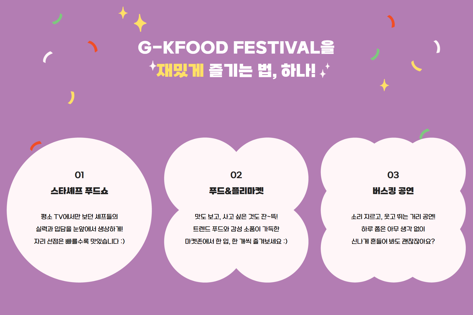 - K-FOOD F&B 존: 건강존, 전통존, 음료존, 트렌드존