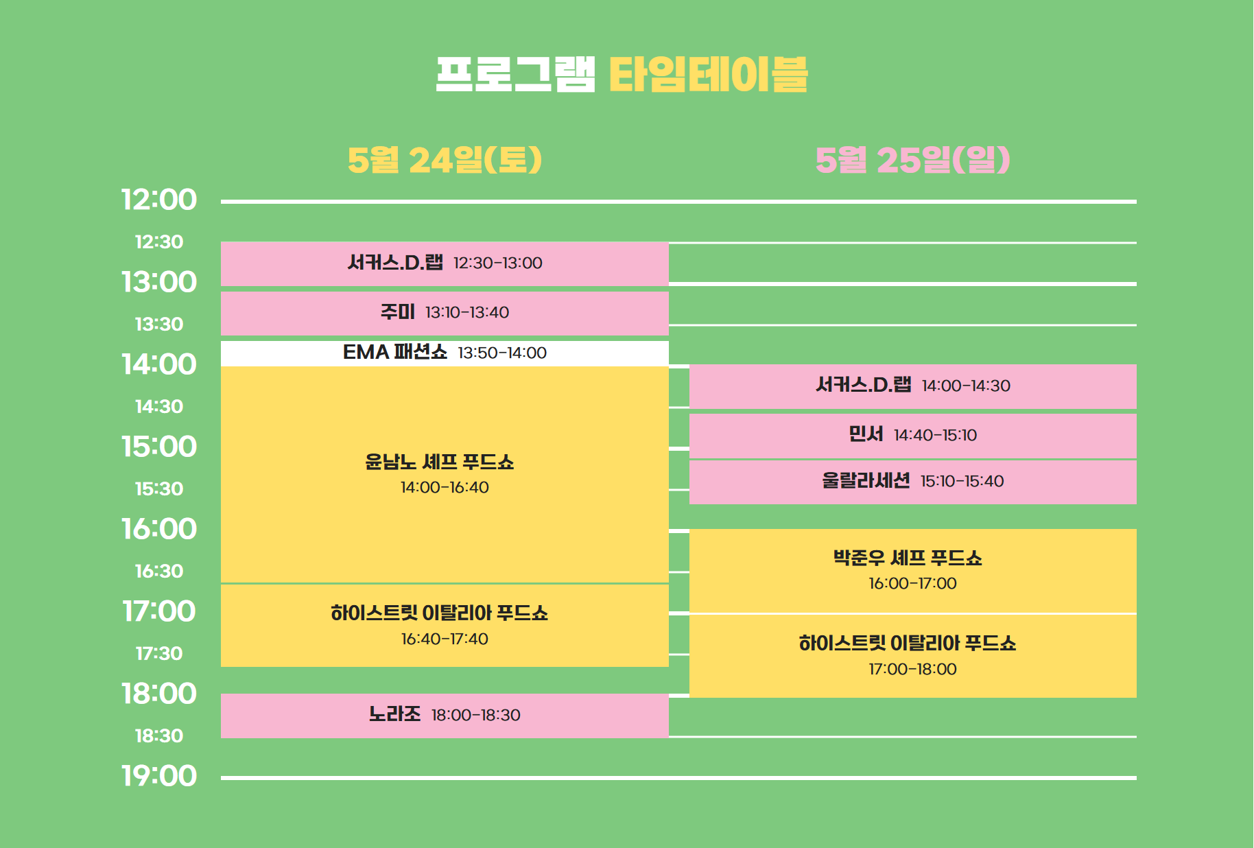- 5월 25일(일) 오후 4시~6시: 박준우 셰프, 이탈리아 셰프