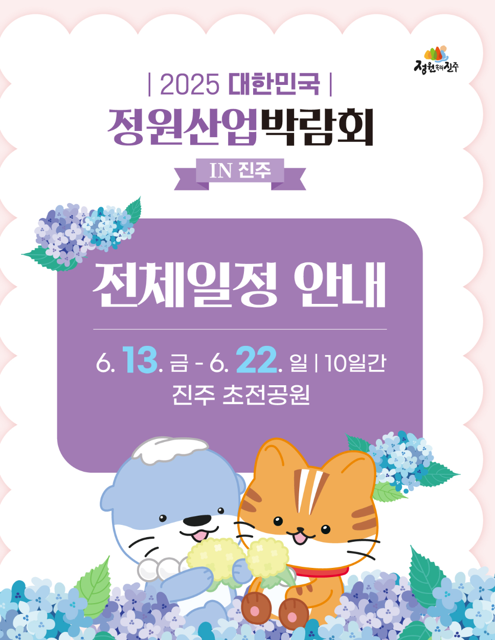초여름의 싱그러움을 가득 느낄 수 있는 진주 초전공원에서 열리는 2025 대한민국 정원산업박람회, 놓치지 마세요! 가족, 연인, 친구와 함께 자연 속에서 여유로운 하루를 보내며 정원의 가치를 재발견해보는 특별한 시간이 될 것입니다.