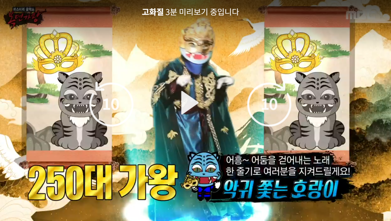 - 클립 영상: 인기 복면가의 무대나 정체 공개 장면. 복면가왕 플레이리스트 참고.