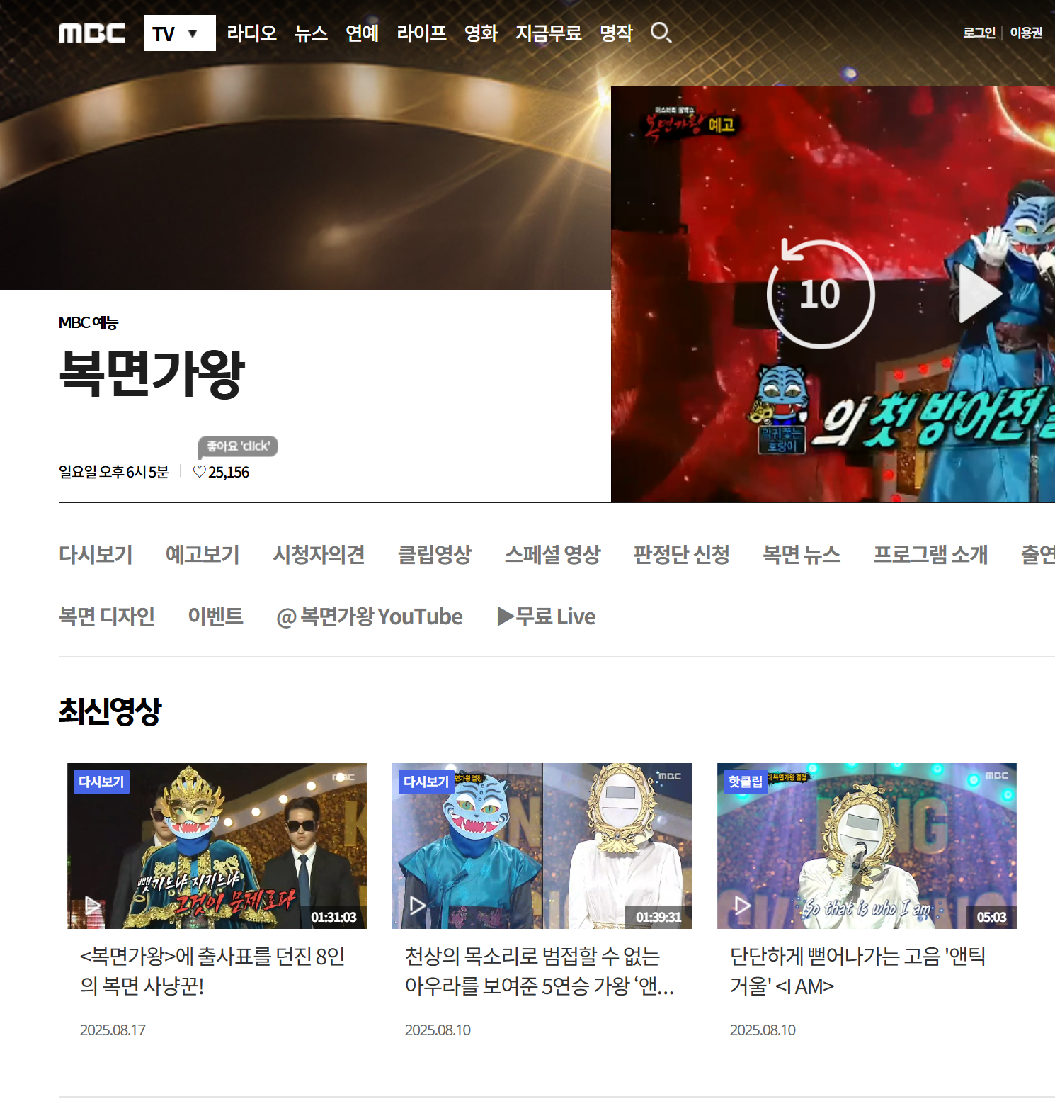 - MBC 공식 홈페이지: 방송 후 바로 업로드. MBC 복면가왕 페이지 방문.