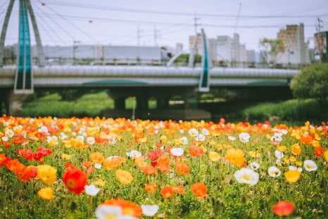 이번 걷기대회의 가장 큰 매력 중 하나는 오산천 산책로에 활짝 핀 캘리포니아 양귀비입니다.