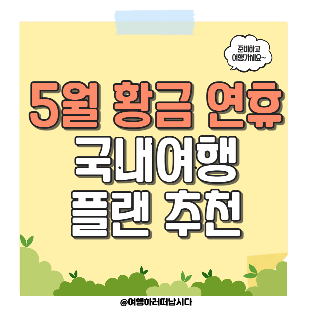 5월이 다가오면 마음이 설레죠. 어린이날, 부처님오신날 등 공휴일이 많아 연휴가 길어질 수 있는 황금 같은 시기니까요. "5월 연휴에 뭘 할까?" 고민 중이라면, 이 글에서 여러분의 여행 계획을 탄탄하고 재미있게 채워줄 아이디어를 드릴게요. 유익한 정보와 함께 실속 있는 국내 여행 플랜을 제안하니, 함께 떠날 준비 되셨나요?