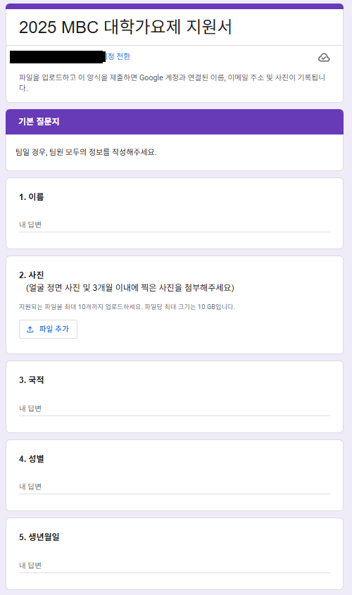 - 대학가요제 신청 구글폼 접속.